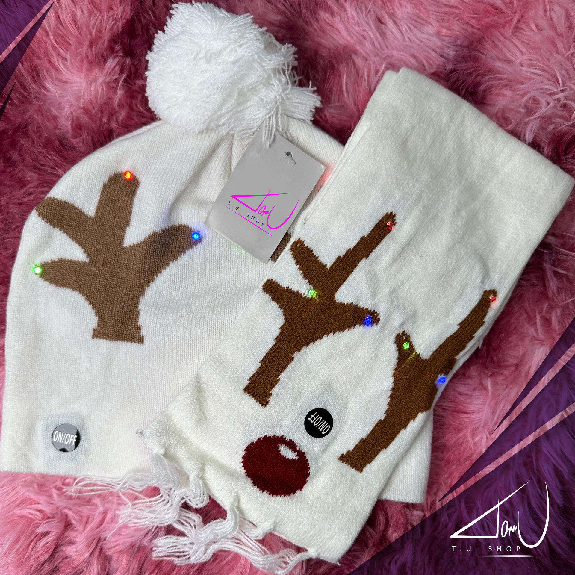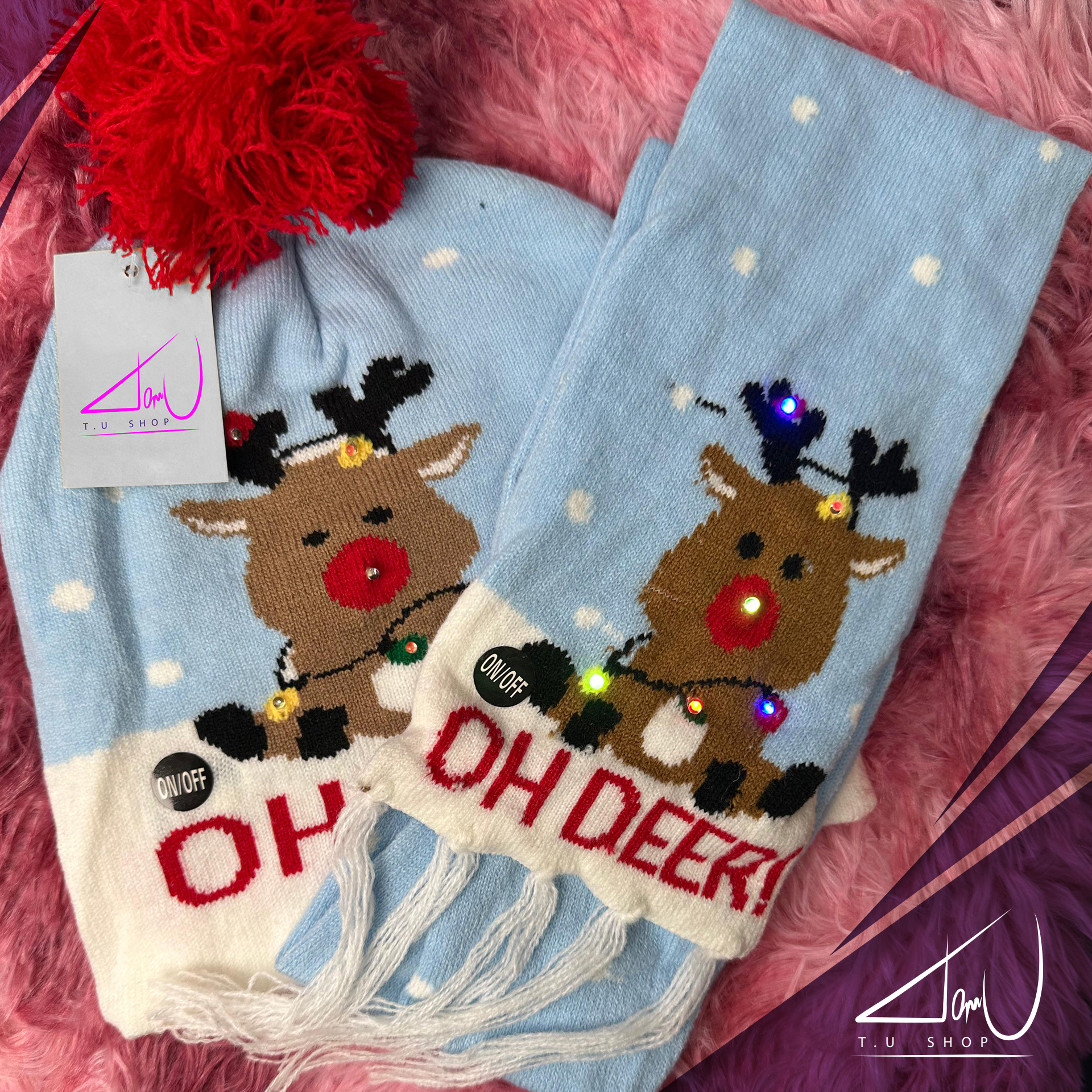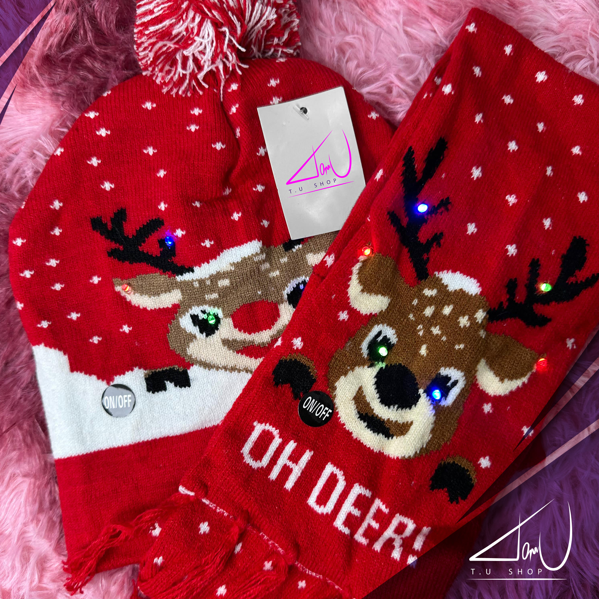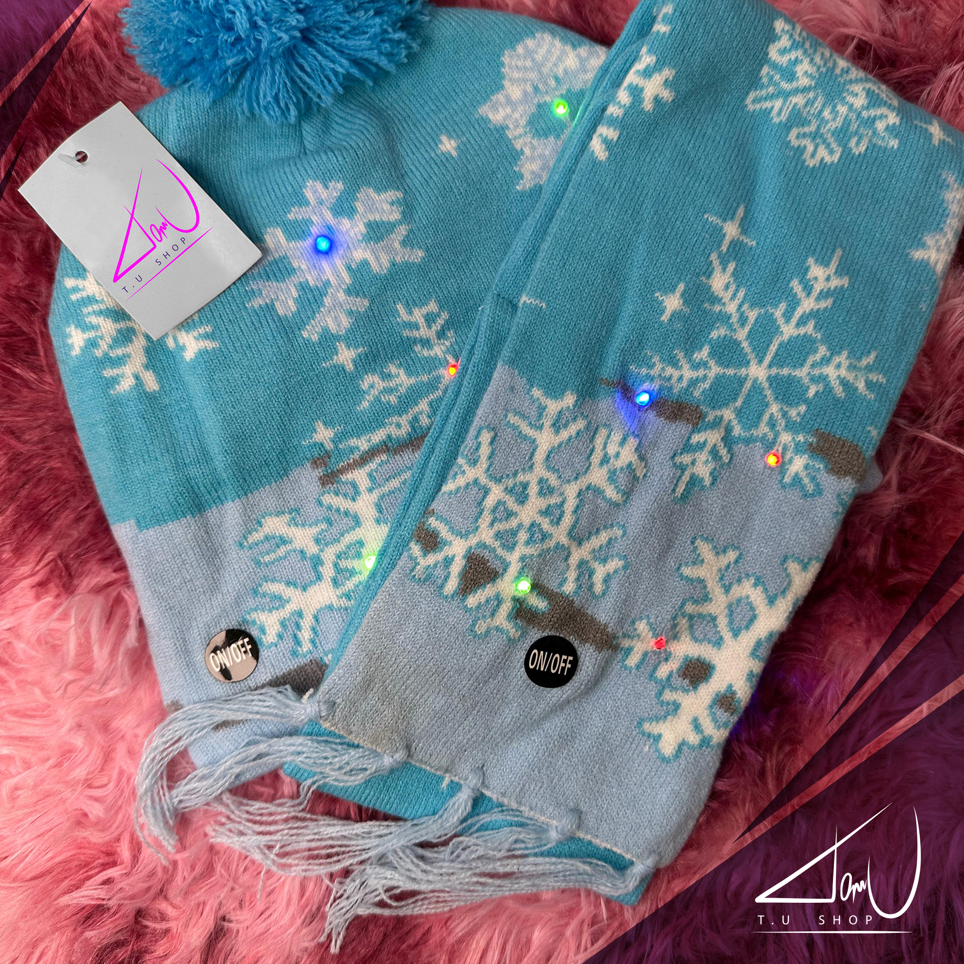 Hermosos gorros navideños con sus bufandas incluida ambas con luz Led de varios colores. Diseños surtidos