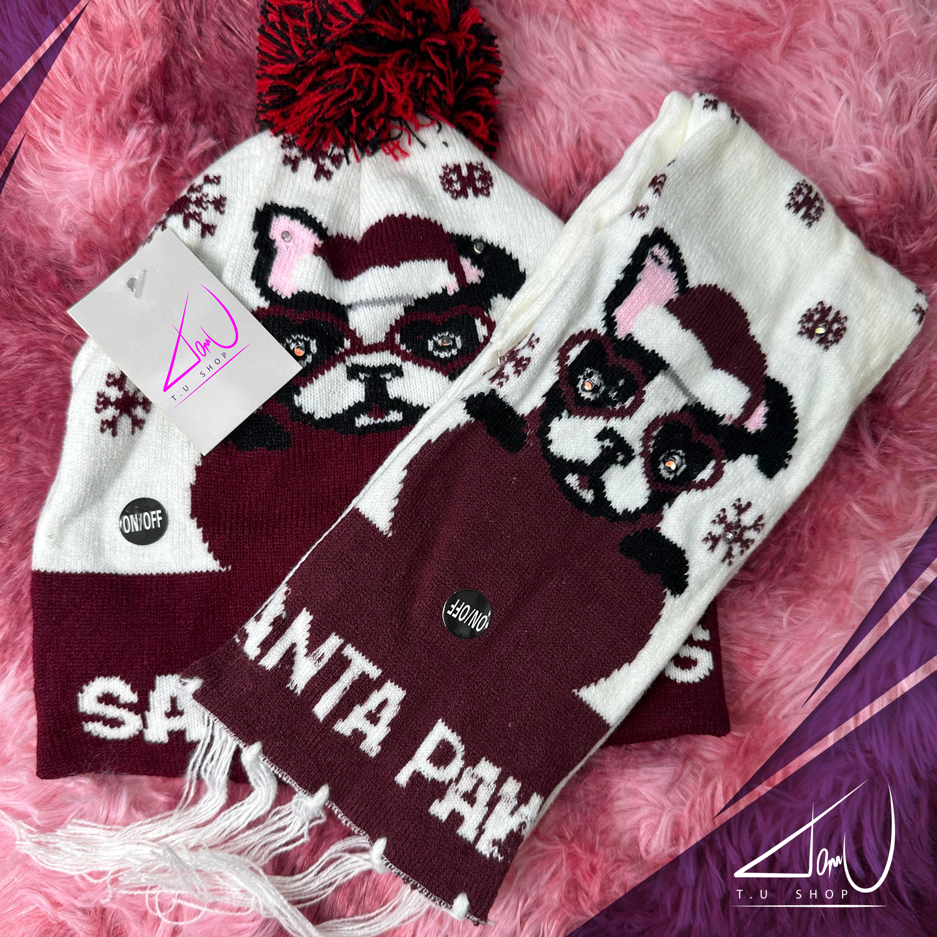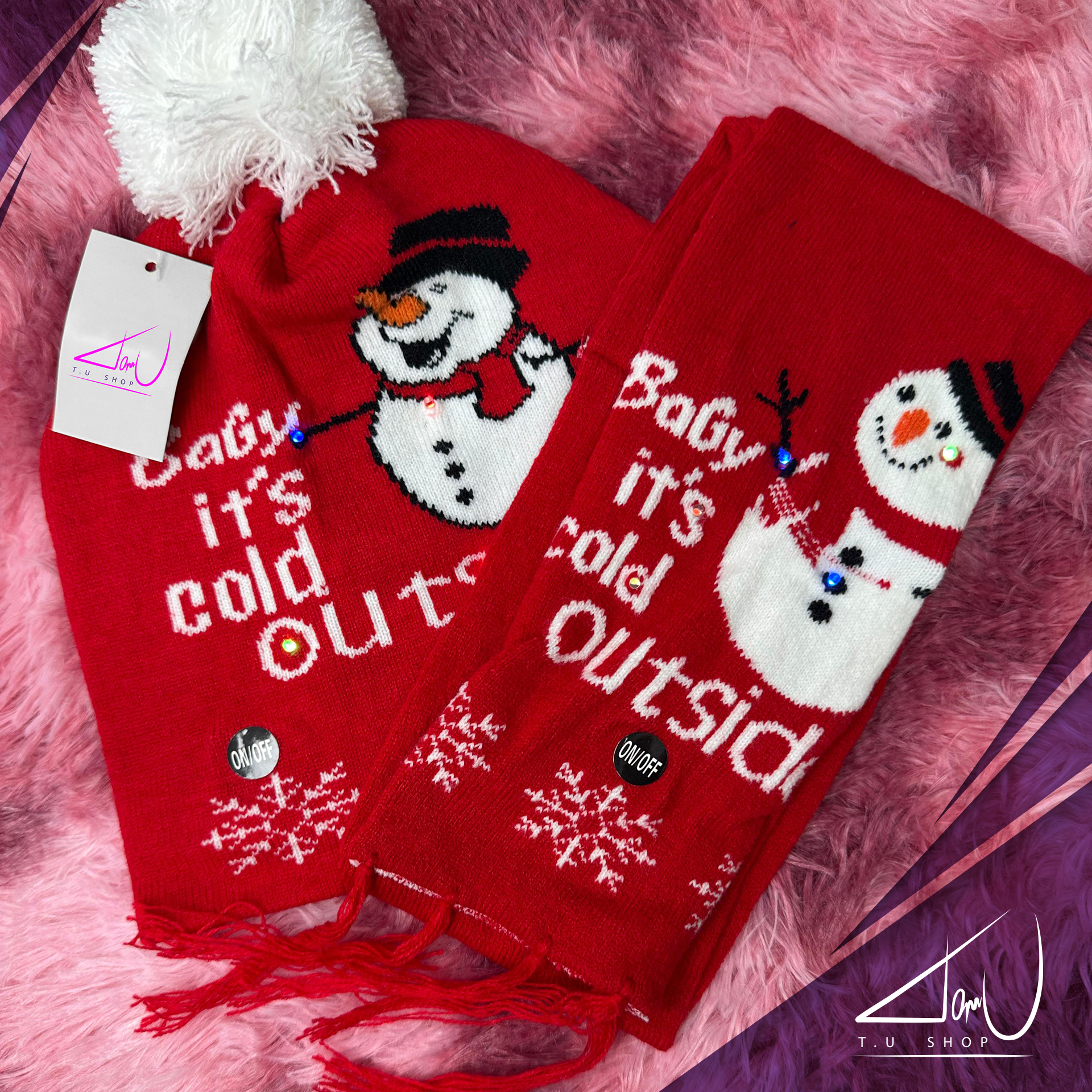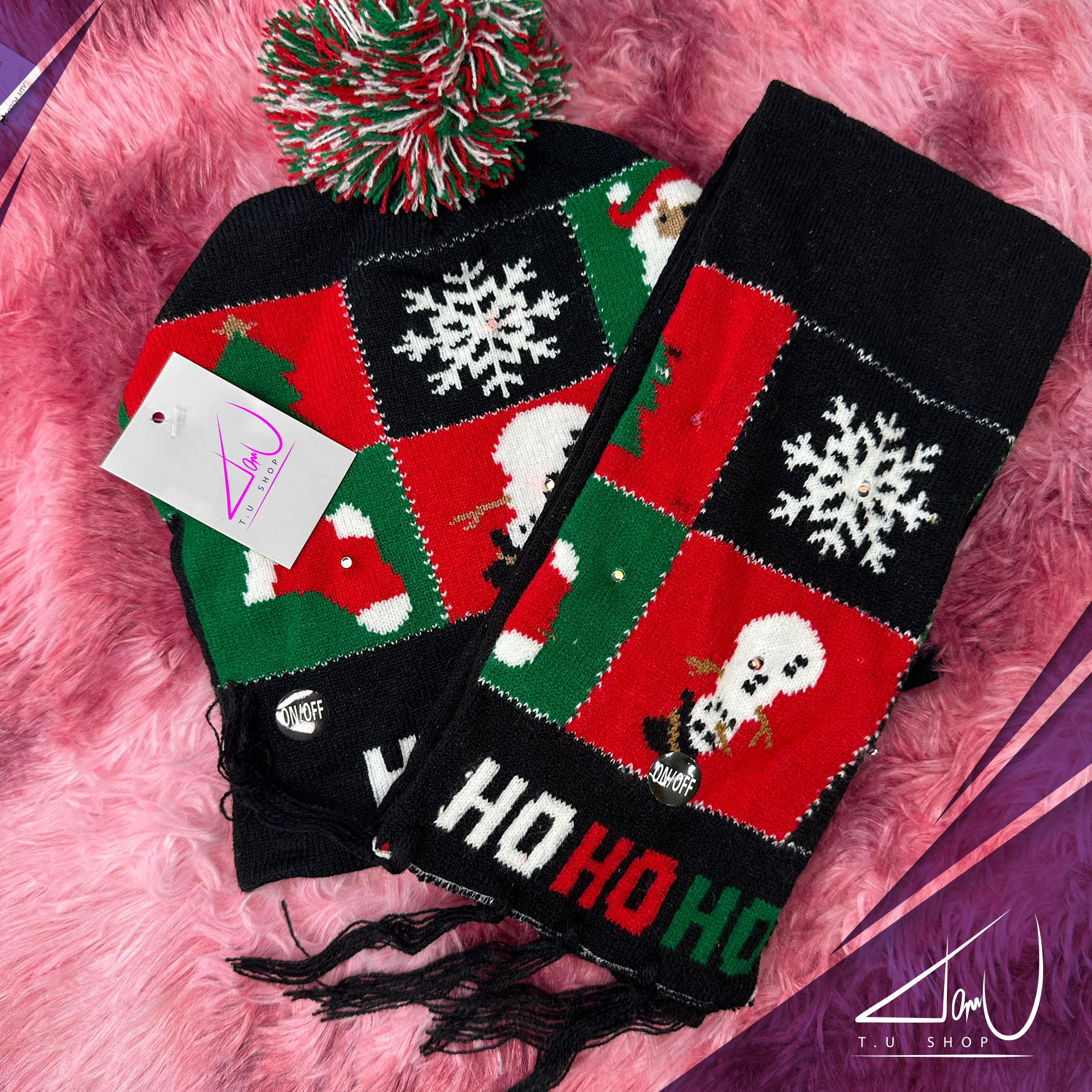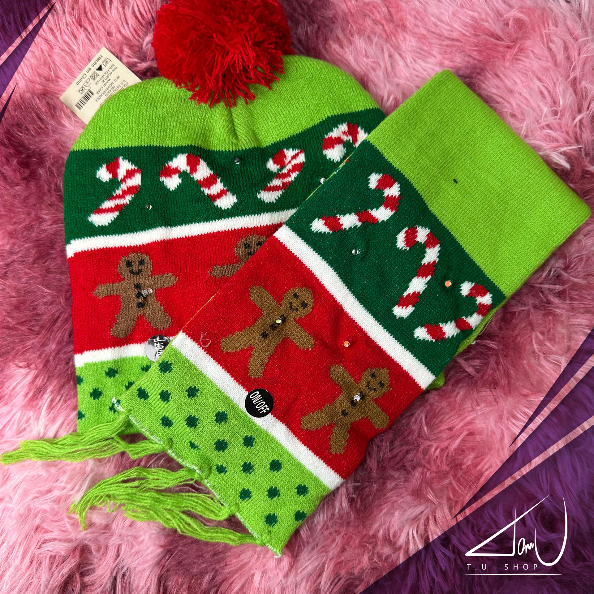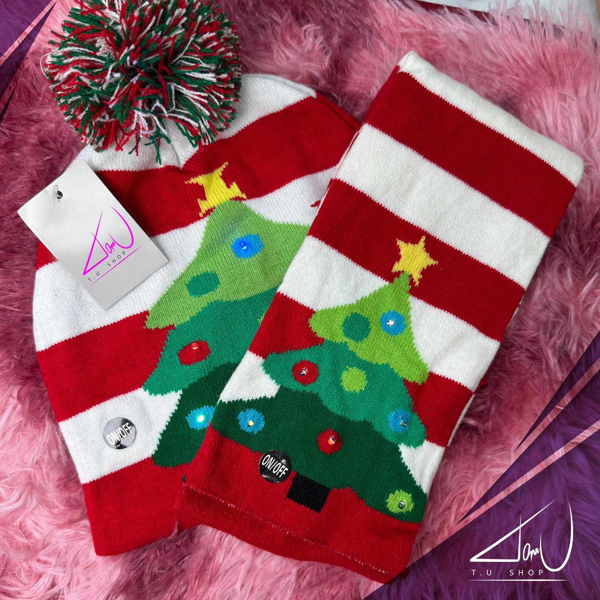 Hermosos gorros navideños con sus bufandas incluida ambas con luz Led de varios colores. Diseños surtidos