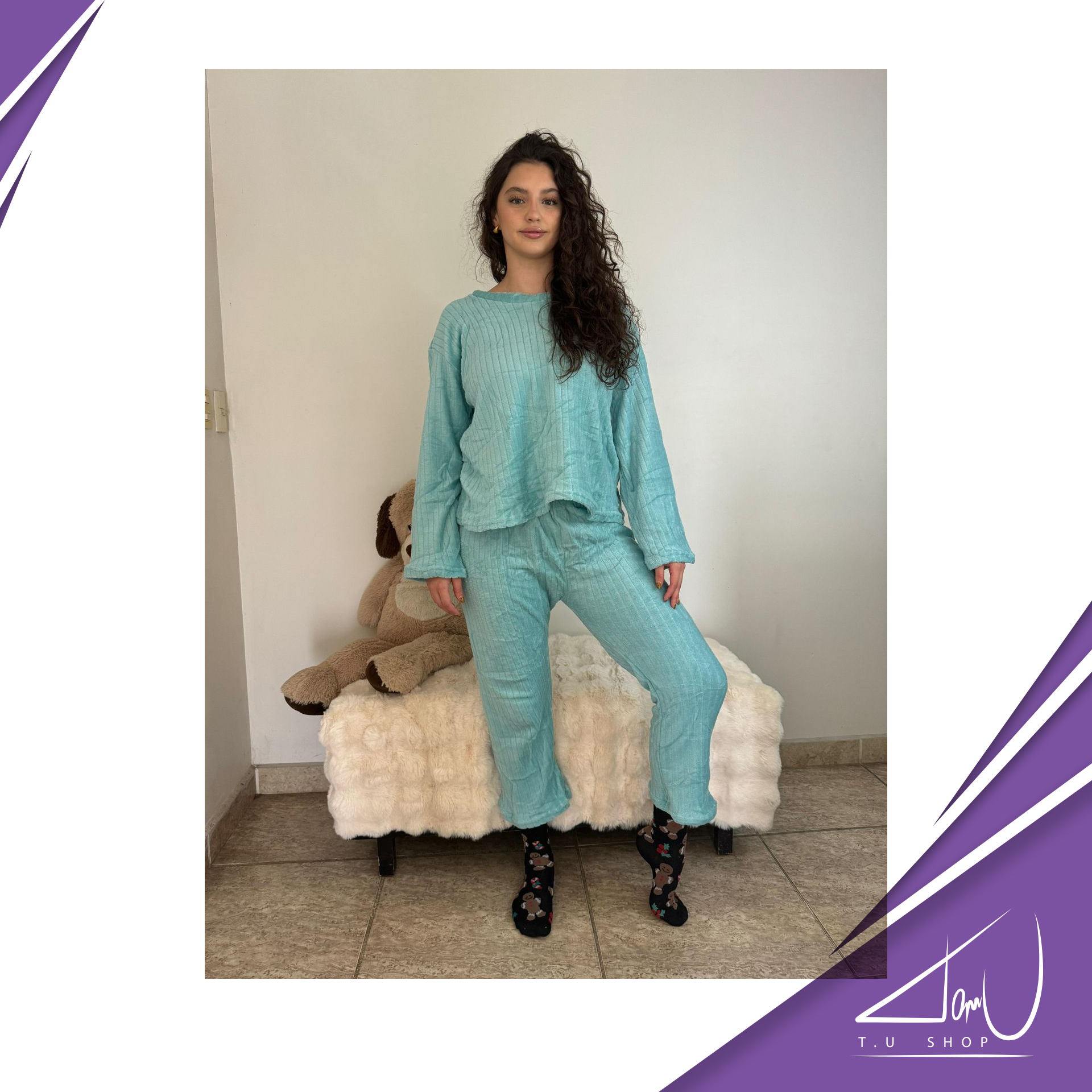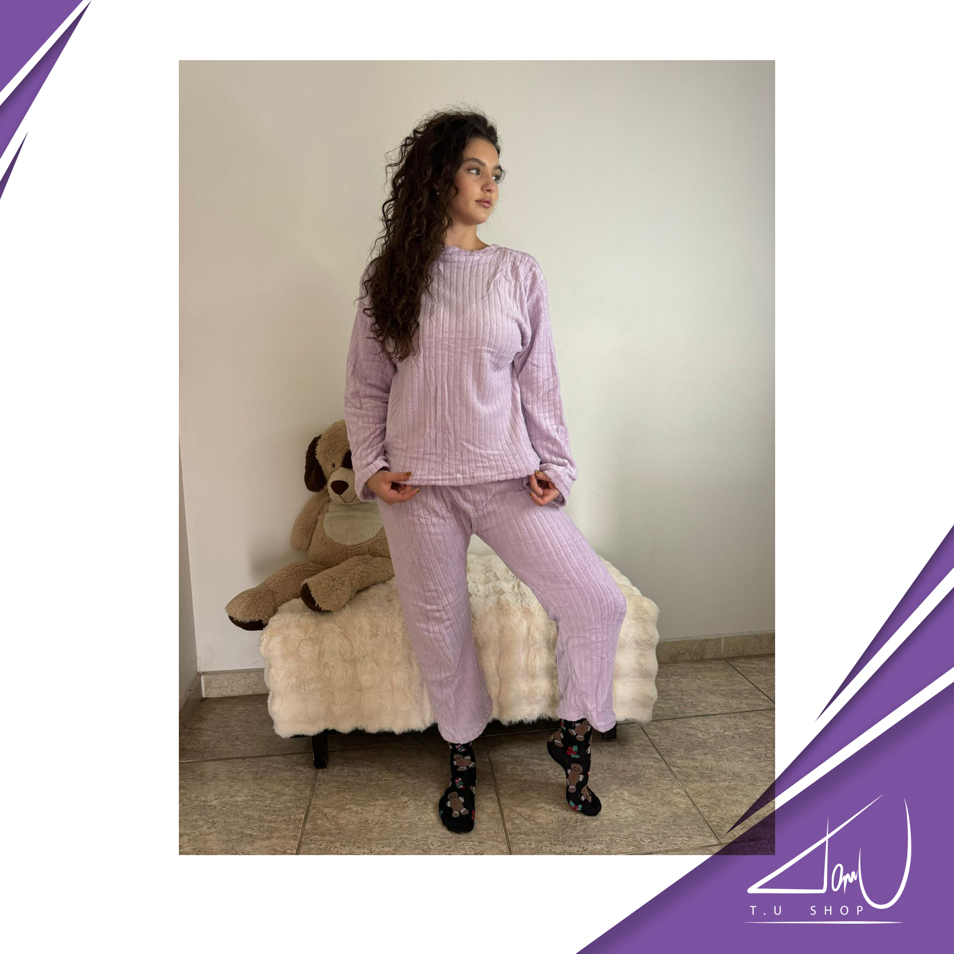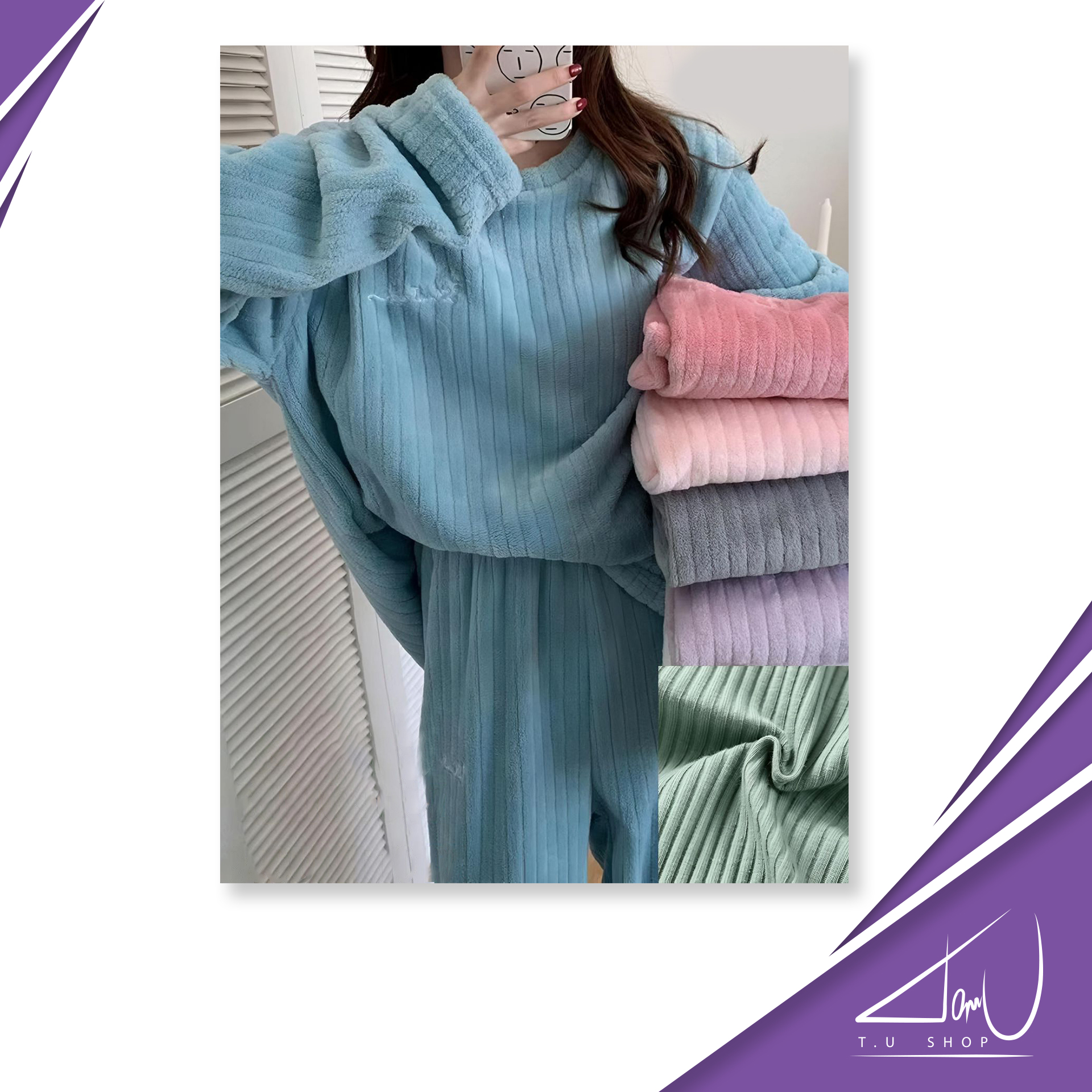 Pijama super suave, unicolor, con lineas en la tela, estilo suelto al final de las mangas y el pantalón. Colores surtidos
