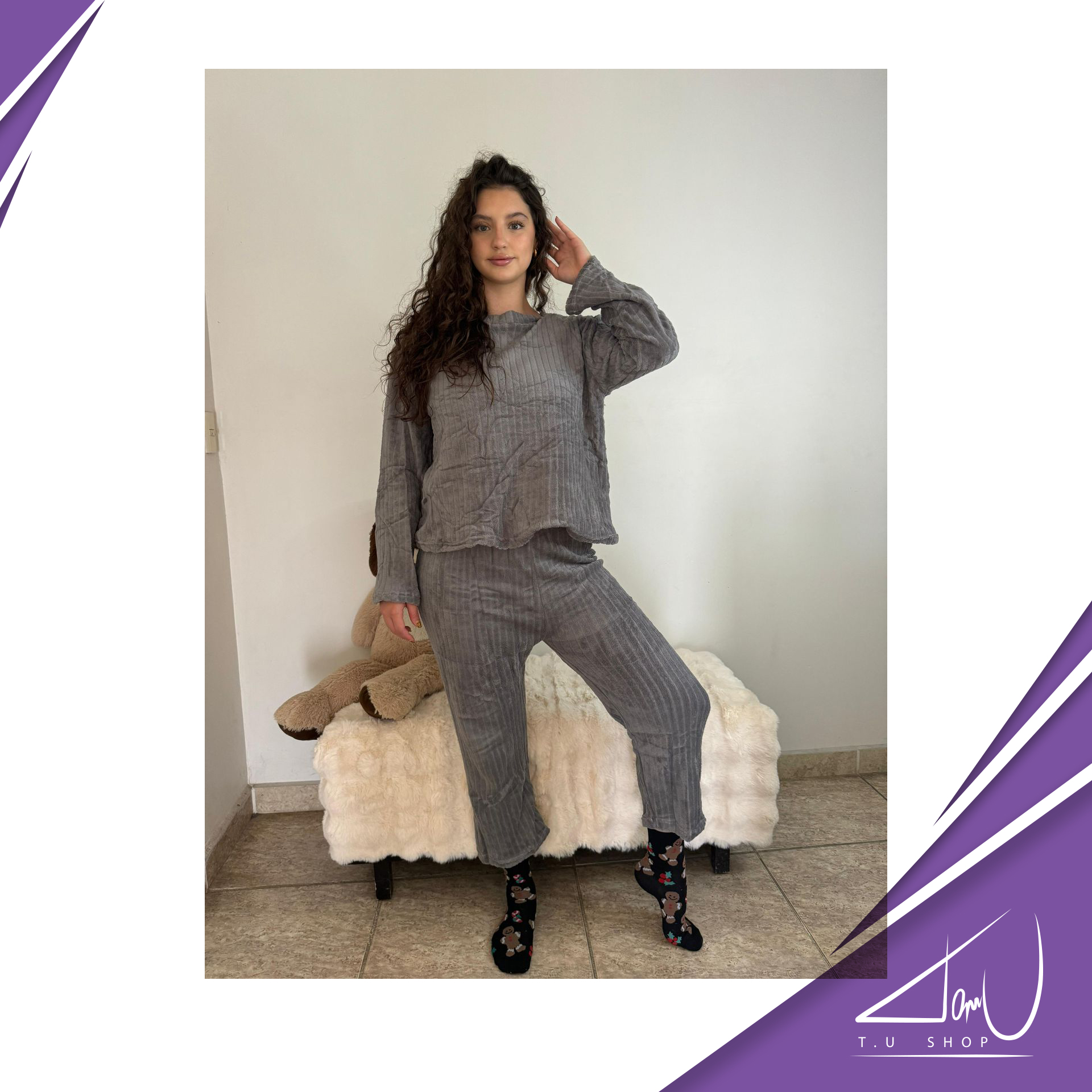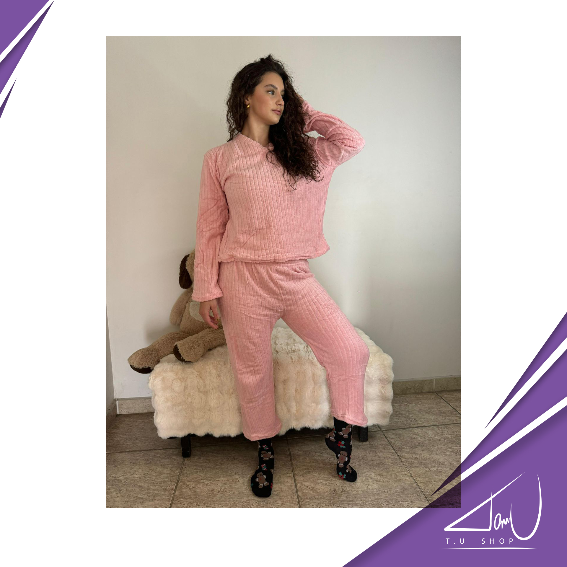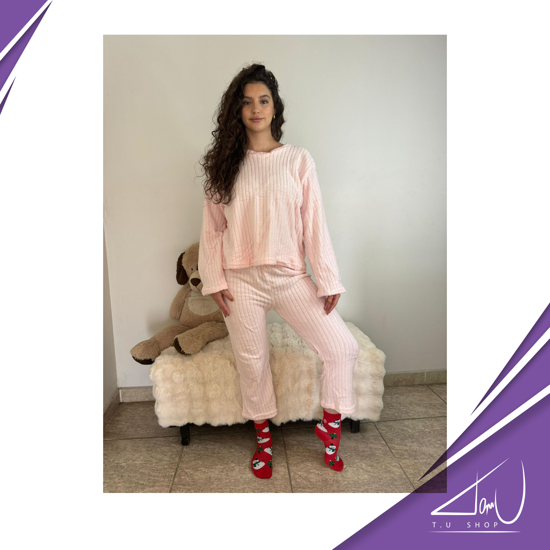 Pijama super suave, unicolor, con lineas en la tela, estilo suelto al final de las mangas y el pantalón. Colores surtidos